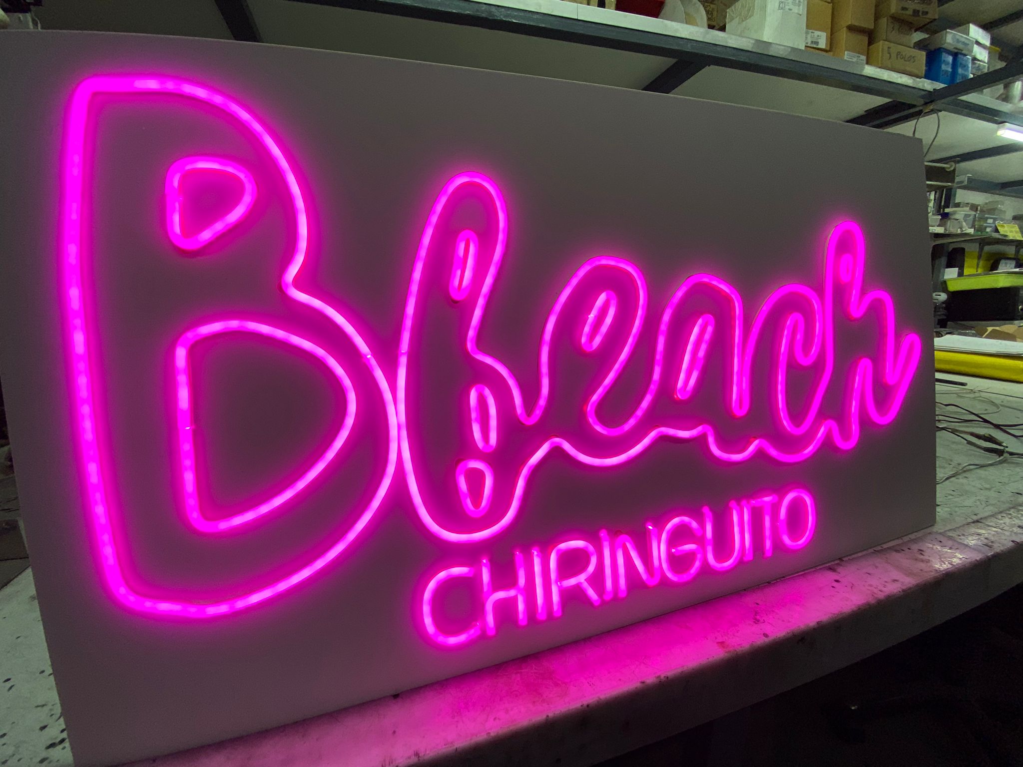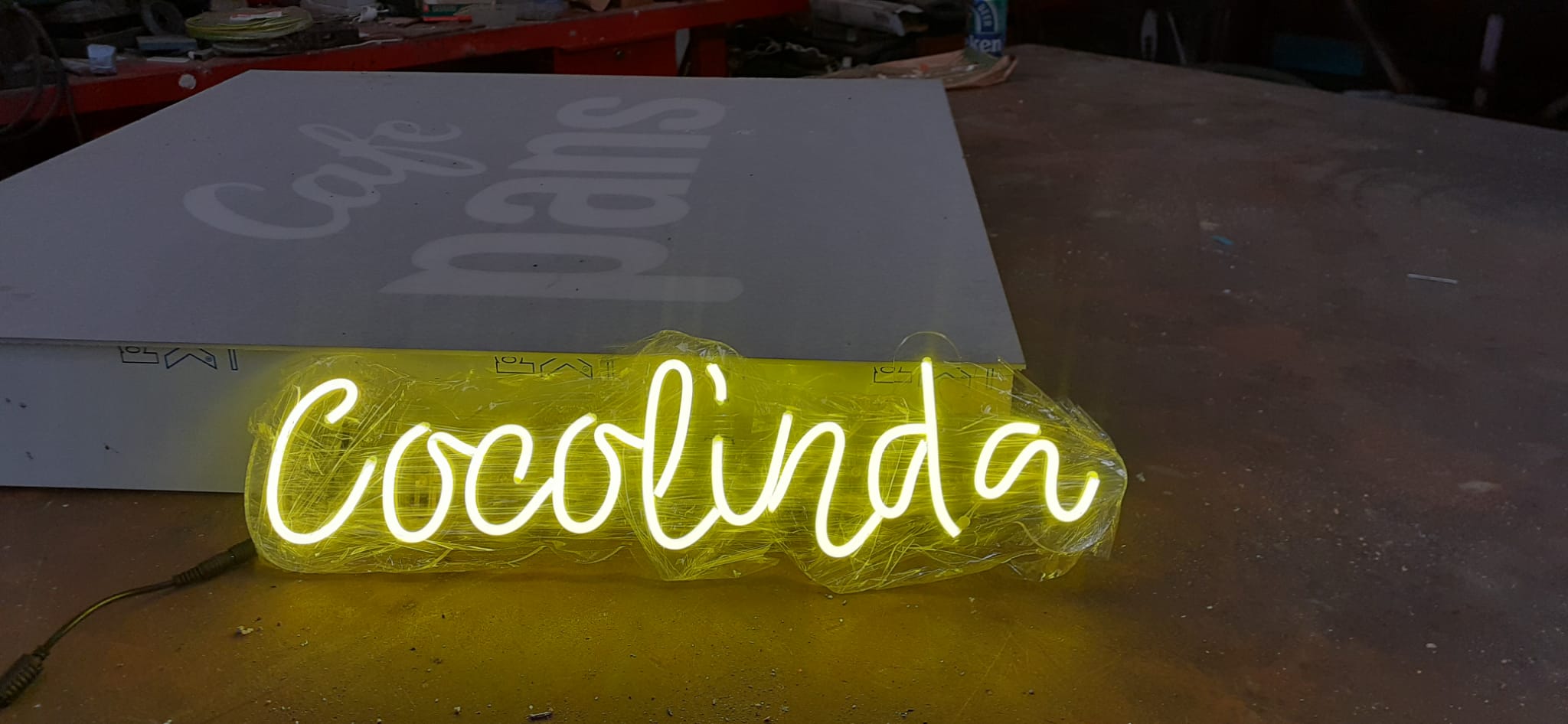 Hace unos años apareció una tira de led que le llaman neón flex, dado que al ver la gran demanda de rótulos de neón y no saber hacerlos, inventaron los chinos esta imitación que tiene sus pros, el precio mucho más económico, ya que en este caso el artesano no está presente, pero como contras, en exteriores la silicona externa se ennegrece, menor duración.