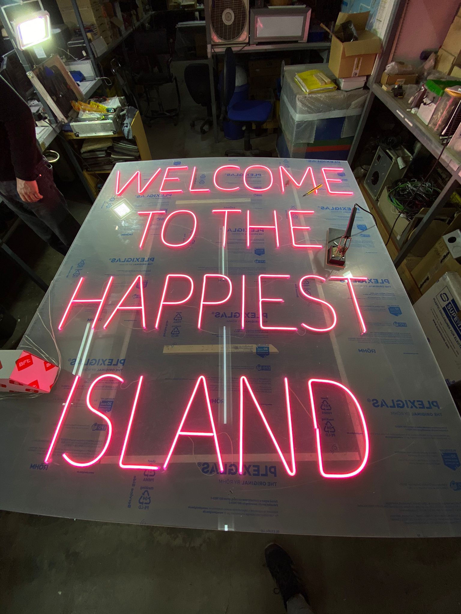 Los rótulos de neón son un arte y como tal lo realizan artesanos, soplando el cristal con sus pulmones, calentando el vidrio con soplete mezcla de gas con oxigeno, sobre una plantilla se pone el cristal en unos tacos, y el vidriero, va calentando este sin llegar a romperlo y soplando para poder doblarlo, hay múltiples colores y estos carteles pueden duran hasta 20 años, van con transformadores especiales, para iluminar no hay nada como el neón.